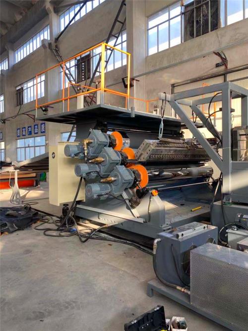 雙層復(fù)合片材擠出機_雙層復(fù)合片材擠出機_佳德裝備110升密煉機/JDL-150/105雙層片材生產(chǎn)線一、系統(tǒng)機組技術(shù)參數(shù)Ⅰ、機器顏色:主機為:公司標(biāo)色;電柜為:電腦色;防護罩:黃色Ⅱ、擠出工藝:110升密煉機-——自動提升機——錐雙喂料機——150單螺桿擠出機——液壓板式換網(wǎng)系統(tǒng)----- 單螺桿喂料機——105單螺桿擠出機——液壓板式換網(wǎng)系統(tǒng)------分配器-----片材擠出模具-----三輥壓光------三輥冷卻系統(tǒng)-----上下覆膜裝置-------托架冷卻------冷卻牽引-----切邊裝置-------計米器------在線剪板機------接料平臺----主機采用:PLC控制Ⅲ、加工物料:POE汽車內(nèi)飾片材,EVA內(nèi)飾片 要 求:ABA 制品寬度:2030mm 制品厚度:1-6mm 產(chǎn) 能:600~800公斤/小時 注意事項:取決于客戶的配方、工藝、雙層復(fù)合片材擠出機生產(chǎn)條件(二)自動翻斗提升機:參數(shù)為1、上料電機功率:2.2kw;提升料斗為不銹鋼材質(zhì),需滿足300kg/鍋,確保安全。2、將捏煉機捏煉后的團狀物料輸送至錐雙喂料機內(nèi)(三)錐雙強制喂料機:一臺 1)電機功率:11kw,